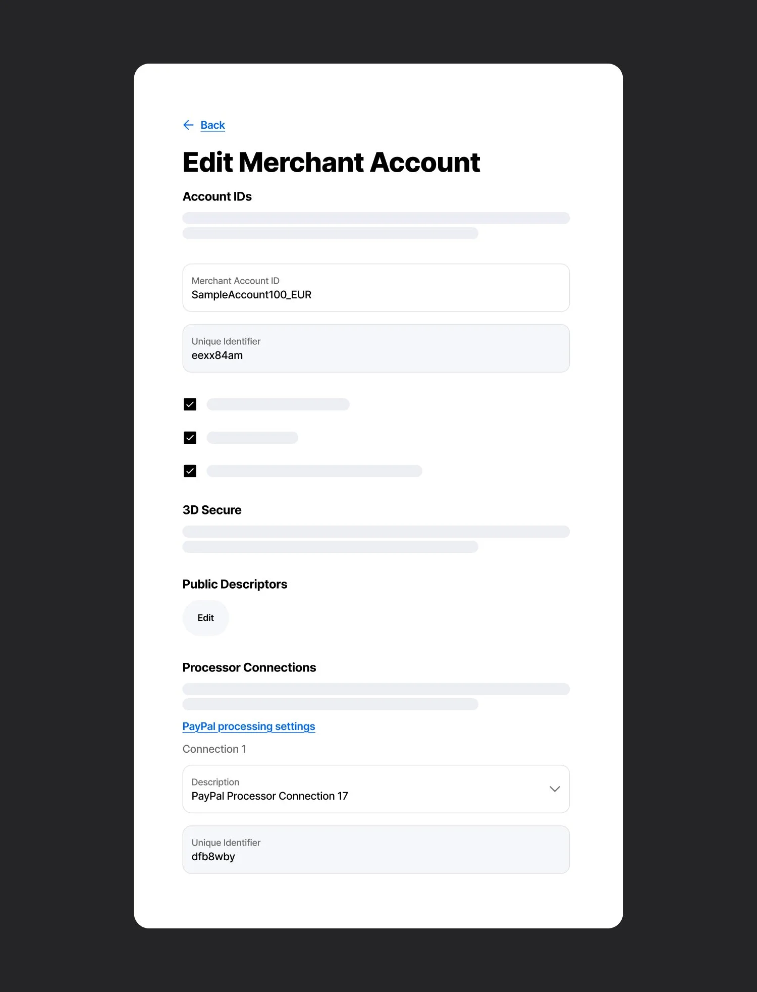 Merchant Account Edit Sheet